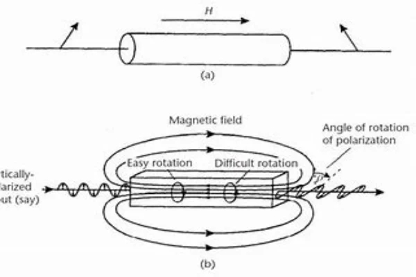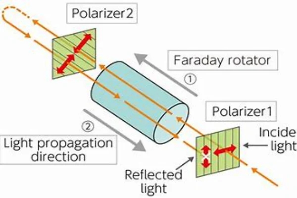 法拉第效應是邁克爾·法拉第在1845年發現的,為法拉第隔離器提供了基本原理。當光通過在磁場影響下的材料時,光的偏振面會旋轉。這個旋轉與磁場強度和光通過材料的路徑長度成線性比例關系。這種效應被應用在法拉第隔離器中來控制光的傳播。